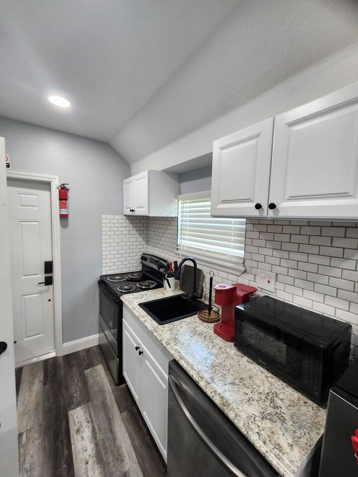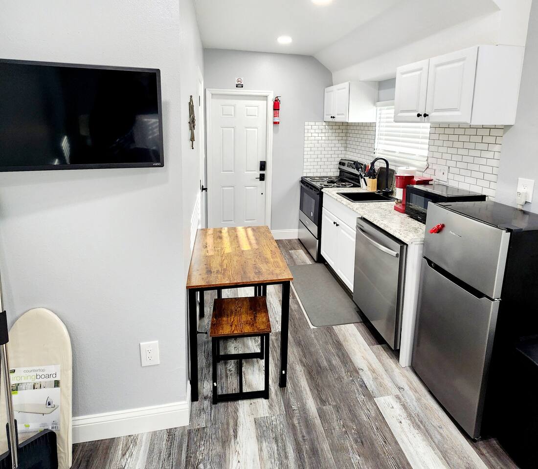 This special studio is an inlaw suite of the Green Roof House but totally on its own with a kitchen, full bathroom, nice queen size bed and shares nothing with the main house. walking distance to the golf course, lake Hollingsworth Florida Southern College and all Downtown Lakeland has to offer, yet close enough to get on tbe Freeway. A stylish studio with all the comfort required.