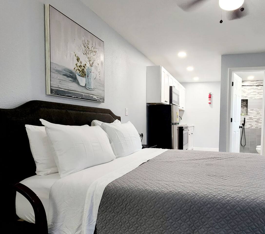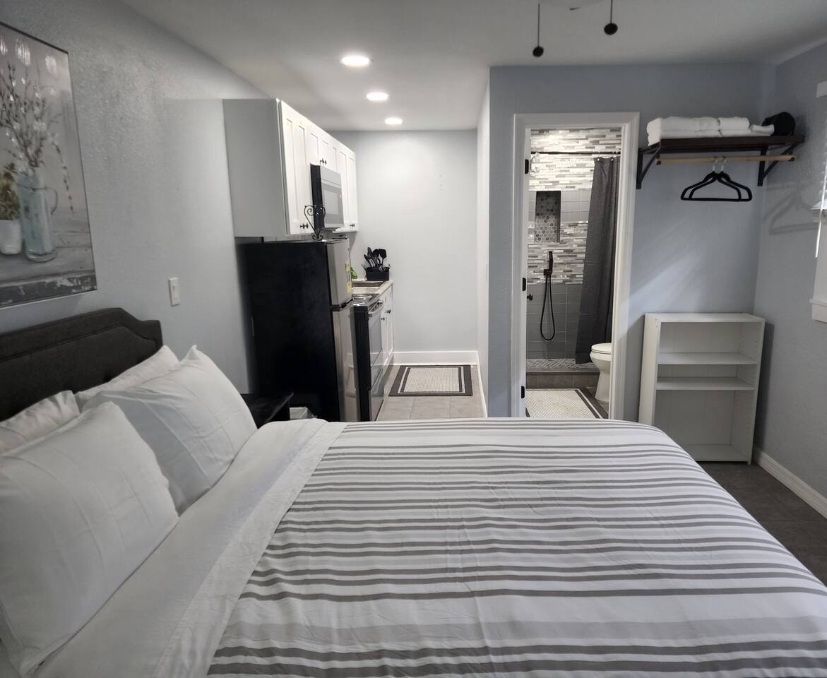 A quaint, quiet, charming and unique studio apartment with careful thought in decor located in the heart of Lakeland. Queen size bed, 42 inch screen TV, beautiful bathroom and an awesome kitchenette and so much more!