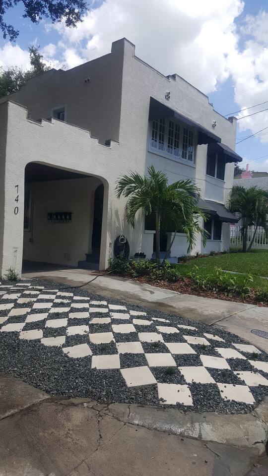Serene and quiet two bedroom home in the heart of Historic Downtown Lakeland. Walking distance to various lakes ( Lake Hollingsworth, Lake Morton and more) Florida Southern College, Polk County Museum, Library, Coffee shops and so much more ! Fully stocked kitchen, beautiful dining area a glorious living room with T.V. free WI-FI, free parking, and two well decorated bedrooms.
